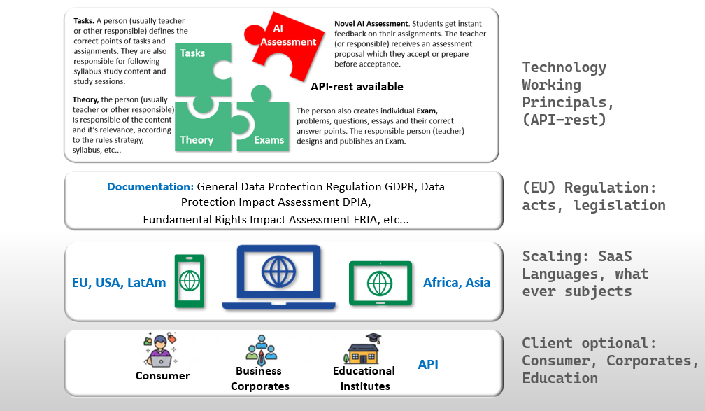Eximiatutor’s AI evaluation technology and its solutions are compliant with legal regulations, including the EU’s AI Act within the European Union. It offers a secure, non-discriminatory, next-generation AI solution designed to enhance learning. At the same time, this solution provides educators with a cost-effective and time-saving method for evaluating exams and assignments.