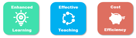(1) Enhanced learning outcomes, (2) Improved teaching methods, and (3) A cost-effective system for continuous study material production.