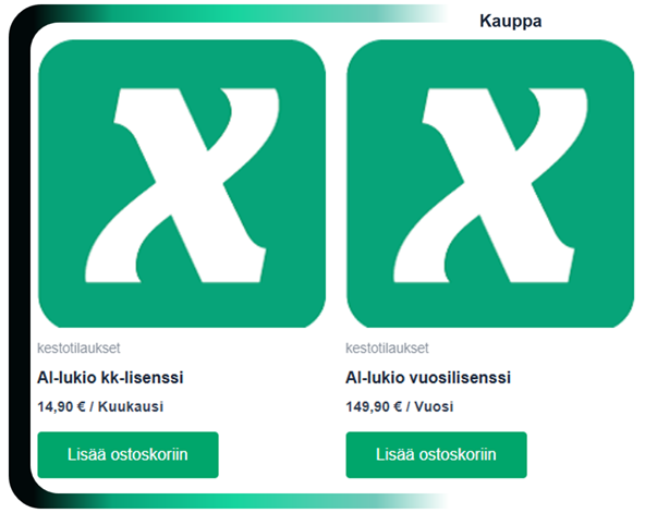 Hanki verkkokaupasta AI-lukion oppimistyökalu tai opettajan AI-koetyökalu